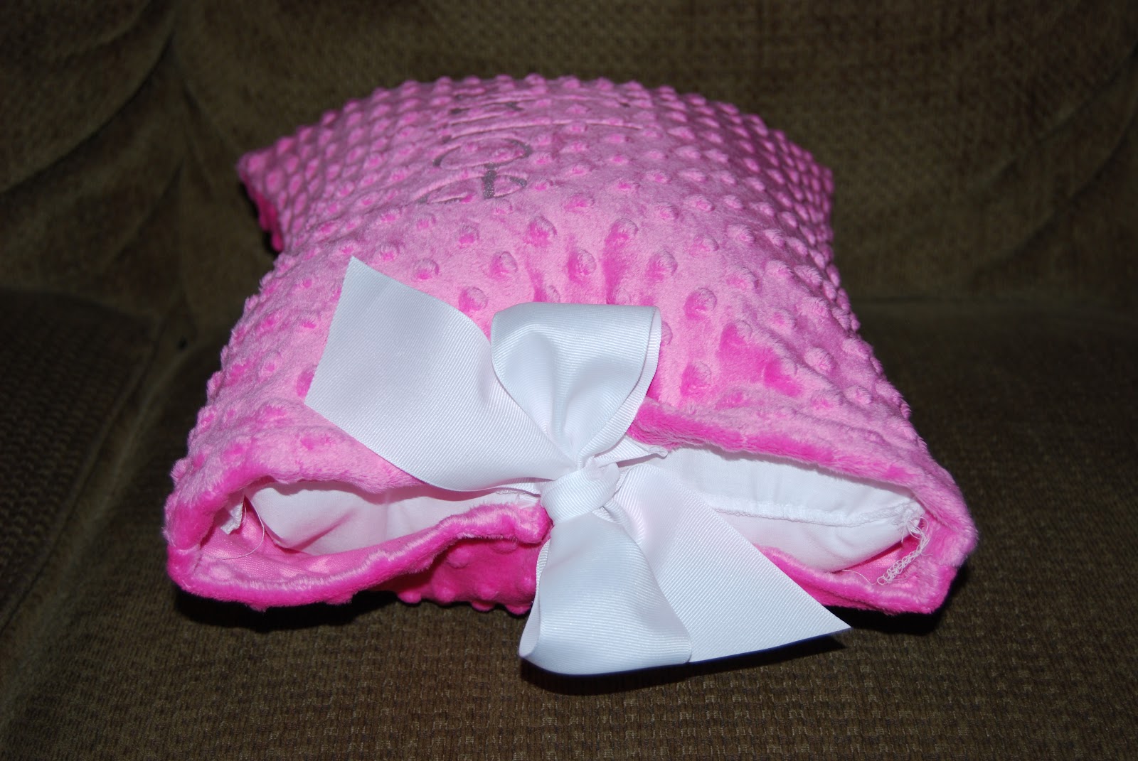 These mini-pillows are for a set of sweet sisters. The black pillow has a back closure.